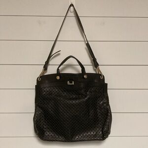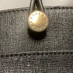 Furla black leather limited edition Piper Lux top handle bag with removable adjustable strap. Double top handle.