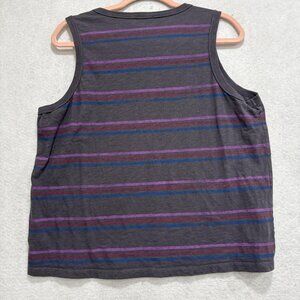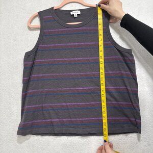 Evereve Tank Top Womens XL Gray Stripe Sleeveless Shirt 100% Cotton Casual