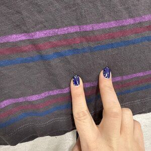 Color: Charcoal gray with purple, burgundy, and blue stripes.