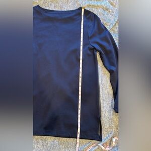 Chicos Navy Faux Leather Front Ponte Tunic. Chicos size 0. Originally $89. Machine washable.