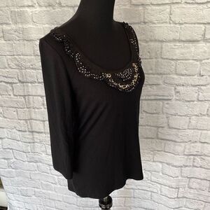 White House Black Market scoopneck Longsleeve ruffle front top black M