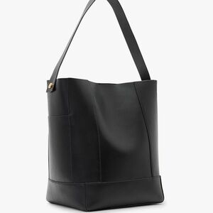 Sleek black leather tote with a stylish gold zipper. Perfect for everyday use. Durable and chic design.