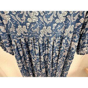Shae by Sassafras Women's Blue/White Floral 3/4 Sleeves Tasseled Sundress. XL