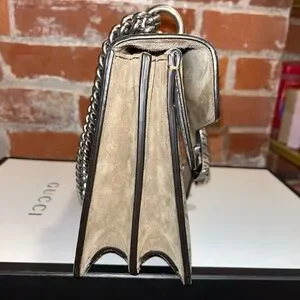Chic Gucci shoulder bag with iconic GG pattern. Features a striking silver chain and signature Dionysus buckle. Perfect for stylish outings. Was gifted to me in 2020, smoke free home, no cracks or tears. Original box with receipt in box; no dust bag.