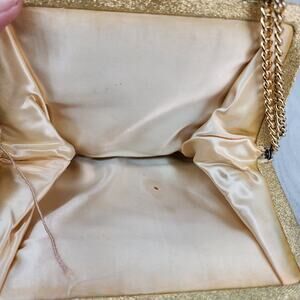 Vintage 60s 70s Gold Lame Evening Clutch Purse 6" Chain Strap Sparkly Holiday