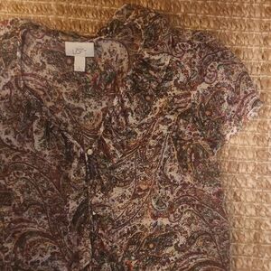 Vibrant paisley pattern. Short cap sleeves. Ideal for casual wear. Fabric has beautiful golden sheen. Great for casual or office. NWOT