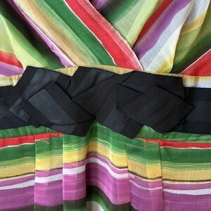 -Colorful Horizontal Striped Sheer Fabric over a Black Lining
