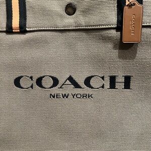 Stylish Coach tote bag. Features gray body with black accents. Perfect for everyday use.