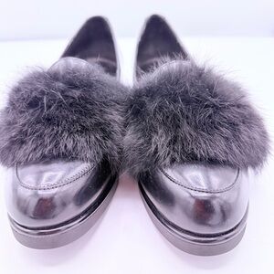 Chic black loafers with plush fur detail. Stylish and versatile.