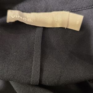 Vince Silk Shirred Belted Navy Shirt Dress. Crafted in pebbled crepe silk; belted shirt dress with shirring at the front and back yoke. It is in excellent preowned condition.