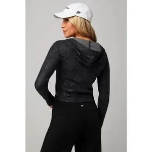 Fabletics Oasis Cropped Hoodie, new with tags still attached and will come in packaging as shown, print in tonal snakeskin similar to photos, made of polyester and elastane, full zip, size medium women's