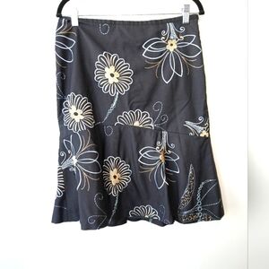 Ann Taylor Loft women's 8 wool blend embroidered black skirt blue tan floral