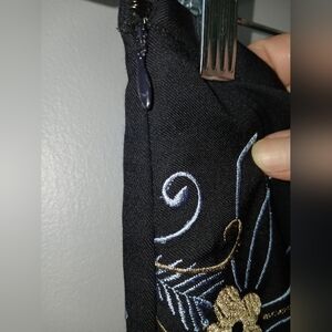 Ann Taylor Loft black wool blend embroidered skirt, side zip.