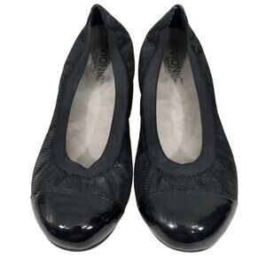 VIONIC ALLORA WOMEN BLACK BALLET FLAT PATENT COMFORT ORTHOTIC CUSHIONED SZ 7 EUC