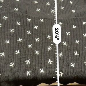 Maeve XL never worn NEW NO TAG Stylish black sweater featuring elegant white AIRPLANE accents. Perfect for adding a touch of sophistication to your travel wardrobe