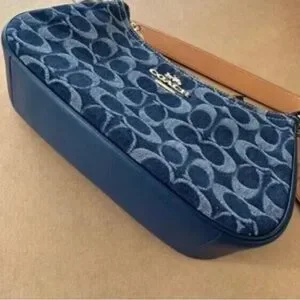 Elevate your style with this Coach shoulder bag, featuring a signature blue and tan design. Perfect for adding a touch of elegance to any outfit.