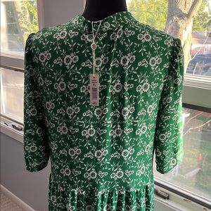 Max Studio Green Floral Tiered Dress Elbow Sleeves XL