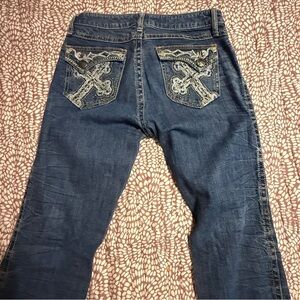 Wrangler Rock 47 Womens Jeans 3/34 Low Rise Bootcut Cross Embroidered Sparkle