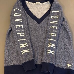 Pink Victoria's Secret Navy Blue V-Neck Sweatshirt