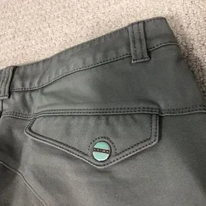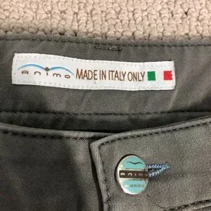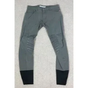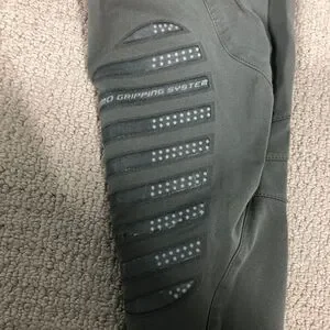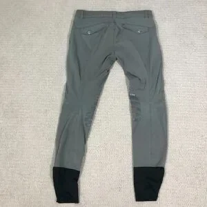 You are purchasing a pair of Animo gray women's knee patch breeches in size IT 50. PLEASE NOTE: these breeches have seen some wear. There is a patched hole on the front right thigh as well as a couple of stains. The knee grips have some wear due to use and there is some pilling on the back of the knees. I've pictured all of this to the best of my ability. Please let me know if you have any questions.