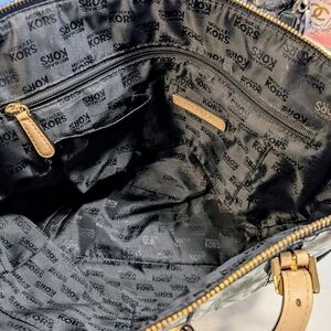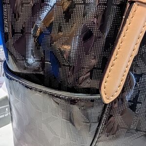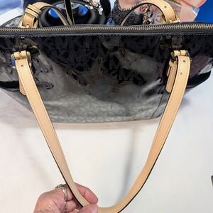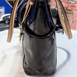 Michael Kors Monogram Black Patent Leather and Tan Totebag
