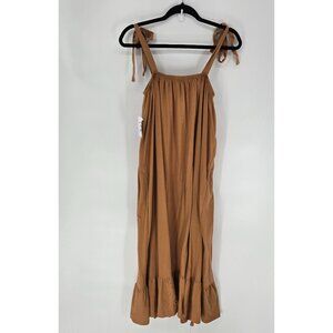 Stitchdrop womens size medium brown elastic halter adjustable tie shoulder strap midi dress NWT New with tags color may appear differently depending on light