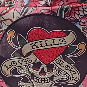 NEW Ed Hardy Pink Skull Rhinestones Patch Print Large Women's Bag 18"x14"x6" NWT