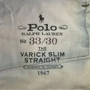 Polo Ralph Lauren Jeans Mens 33 Blue Varick Slim Straight Stretch Denim 33x30