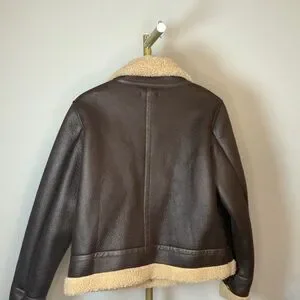 Sonoma dark brown faux leather jacket with thick cream sherpa lining and collar. Snap closure, side pockets. Size L. Excellent condition.