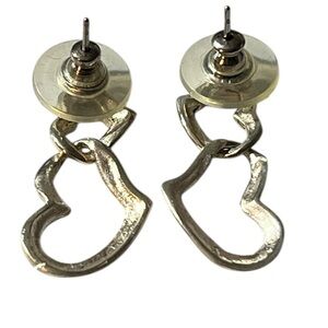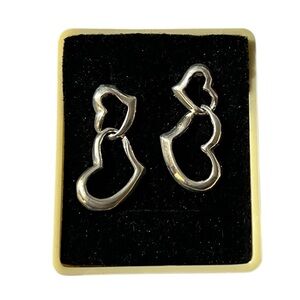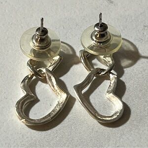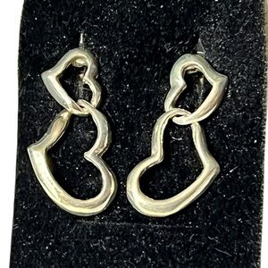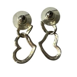 These elegant silver heart earrings add a touch of sophistication to any outfit. Perfect for any occasion.