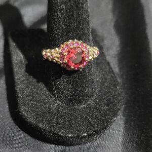 Elegant Gold Tone and Red Gemstone Fashion Ring Size 7 1/2