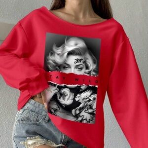 Stay Wild Red Off-Shoulder Sweater