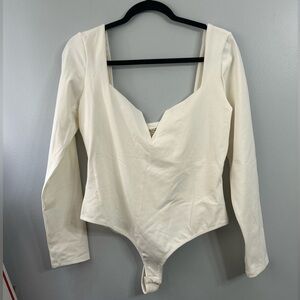 Free People Intimately Sz Lg Ivory Zoe longsleeve Bodysuit Square Neck Vneck NWT