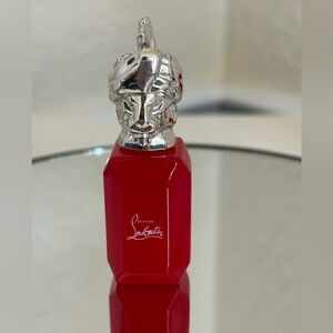 Luxurious Presentation in a Christian Louboutin red glass bottle that mimics the red soles, topped w an intricate spike and palm motifs.