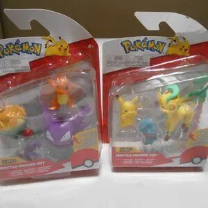 This product is a set of two new packs containing a total of six Pokemon battle figure articulated toys, including popular characters like Pikachu, Appletun, Haunter, Wynaut, Leafeon, and Charmander. These action figures are part of the Animated Adventures series by Jazwares, featuring vibrant colors and made of durable plastic material. Perfect for fans of the Pokemon franchise and TV show, these boxed toys are sure to bring hours of imaginative play. All my items are shipped the same day that payment is received from a clean, smoke free, home!