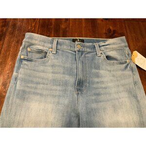 7 For all Mankind Light Wash High Waist Cropped Skinny Blue Denim Jeans, Size 30