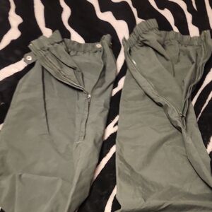 Sage green pants with elastic waist. Button accents on cuffs.