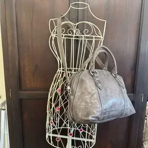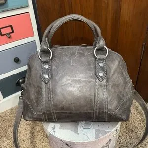 Tags: Frye, leather satchel, Frye crossbody, Frye satchel, Frye Harness purse, Frye gray purse, Frye dome purse, vintage Frye, Frye Melissa, Grey Frye, real leather handbag