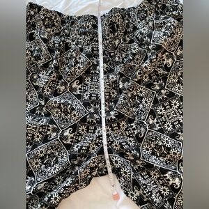 Chic monochrome pants with intricate patterns. Versatile and stylish.