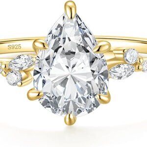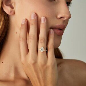 2CT 925 Sterling Silver Engagement Rings Pear Cut Wedding Teardrop Bridal Halo C