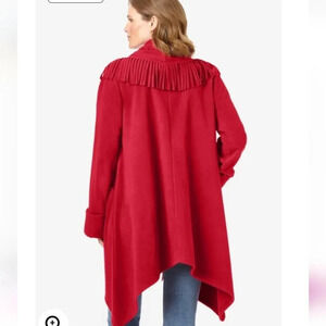Woman within FleeceFringed Shawl Collar Fleece Jacket