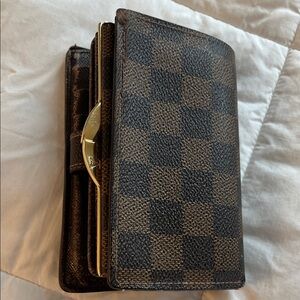 Stylish Louis Vuitton checkered wallet with built in change purse. Features a classic brown design.