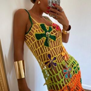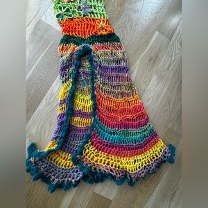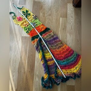 Vibrant crochet maxi dress. Features multicolor stripes. Sleeveless design. Perfect for summer. this dress was handmade by a designer on instagram.