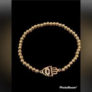 Hamsa Gold Tone Stretch Beaded Bracelet