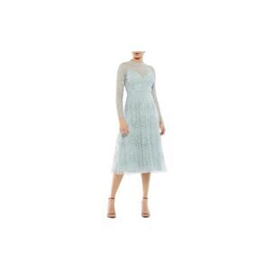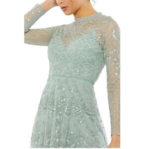 Mac Duggal 9142 Sequined Illusion Long Sleeve Midi Dress Seafoam Size 10 $498