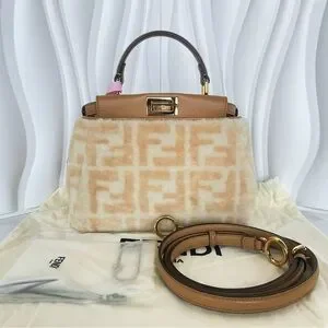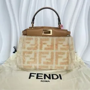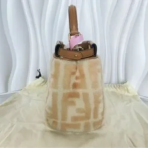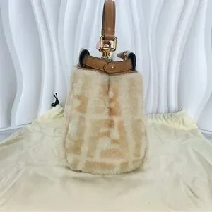 Fendi Peekaboo Shearling FF Motif Top Handle Bag