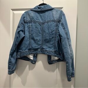 This classic denim jacket by Highway Jeans is the perfect everyday layer. It features a timeless medium blue wash, a button-up front, and chest flap pockets for that iconic denim look. Made from 100% cotton, it offers a comfortable fit and durable quality. The jacket is in excellent pre-owned condition with no rips, stains, or noticeable flaws. Whether you're throwing it over a dress or pairing it with jeans, this jacket adds effortless style to any outfit. Size large approximately, the size tag is cut out. Smoke free, kitty friendly home.