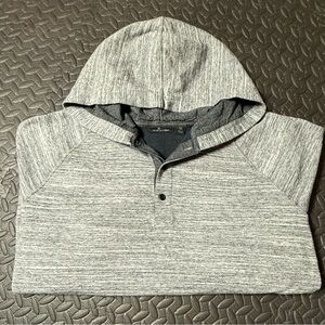 Casual and cozy hooded sweatshirt. Features a heathered gray design, 3 button placket and slim fit silhouette. Ideal for everyday wear or any outdoor activity.