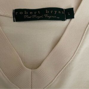 Vintage Robert Bryan Port Royal, Virginia V-Neck Pullover in a cream color. Features a ribbed v-neckline, cuffs, & hemline. Very gently preloved. Size large. Approximate measurements lying flat: 25.5” pit to pit & 25.5” length from shoulder to hem. I welcome offers! I will accept or counter. Please note, if you are prompted with a minimum amount when trying to send an offer, disregard that & message me your offer instead. I will gladly consider it!