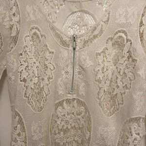 I removed the tags. It is a size m. It does stretch. There is elastic on the waist too for better fit. Bought in a boutique in Paris. You will get tons of compliments. I wore it once . Like new